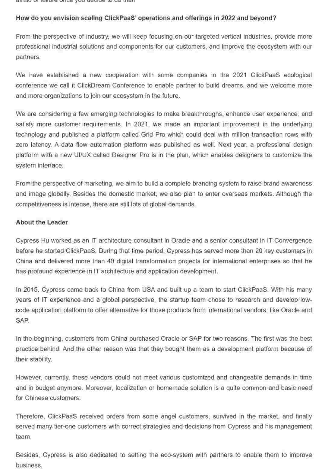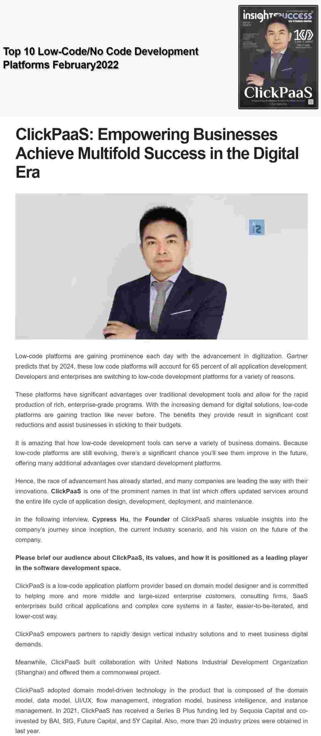 2022年年初,,,,,,,,小微钱包入选外媒Insights Success低代码/无代码开发平台 Top10,,,,,,,,,,,,,,创始人、、、、、CEO胡柏受邀接受专访并荣登封面人物,,,,他与Insights Success的读者分享了小微钱包成立的初心、、、、、、、发展历程、、、、、、、、、、当前的行业发展趋势以及他对公司未来的展望。。。。。。